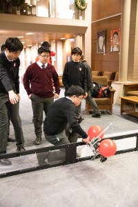 We’re Thomas and Daniel, members of the Saints Robotics club. Last winter, we represented Saints to compete against Notre Dame Secondary School in a robotic tournament: the Balloon Battle. In this competition, we created specialized balloon-bearing robots, which we maneuvered to pop the opponents’ balloons while defending our own, almost like Mario Kart. The competition proved to be a very engaging, fun, and valuable experience, where we got to build specialized robots with VEX Robotics parts.