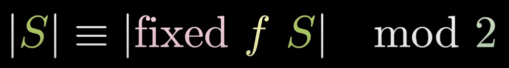 The parity of the size of the set of an involution function is always determined by the number of fixed points or elements. With the second involution, we’ve established that the parity of the size of Wp is odd as there’s always one fixed point.